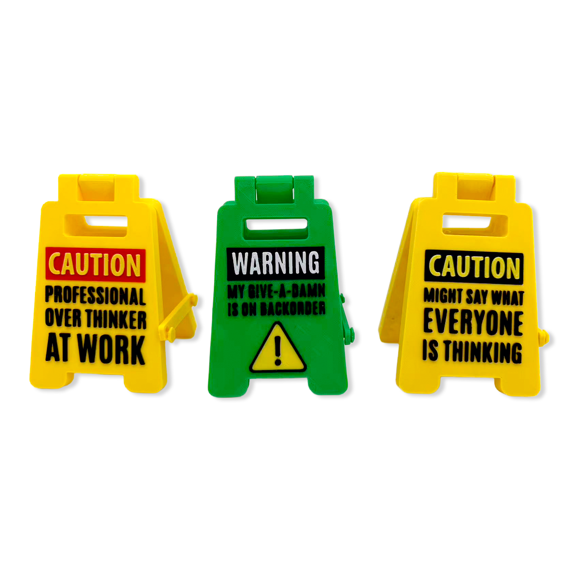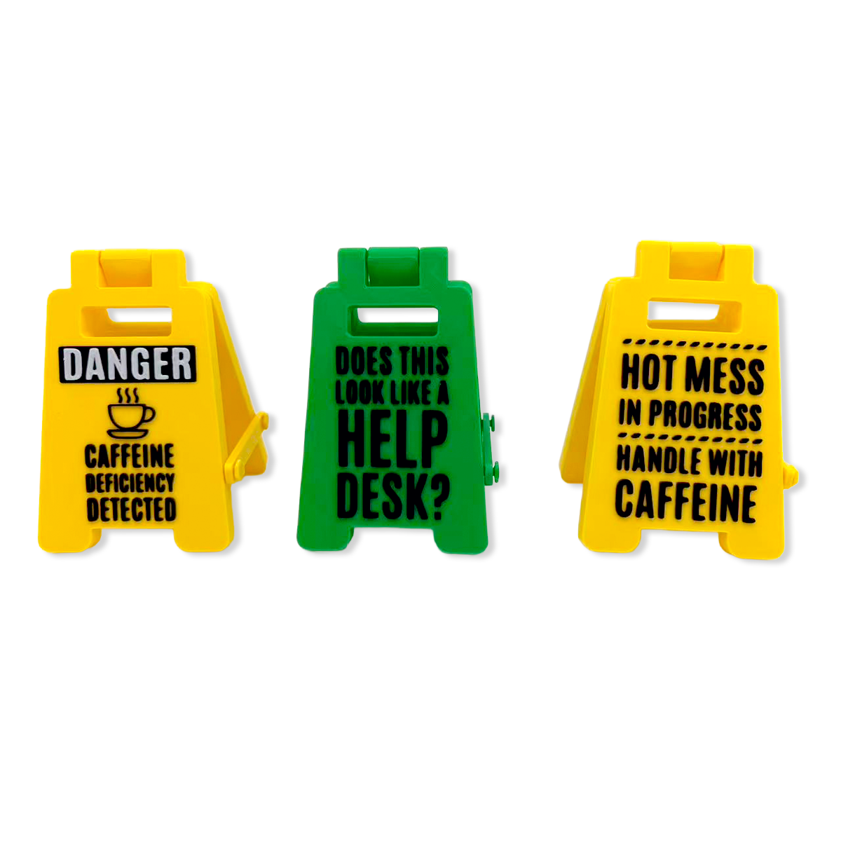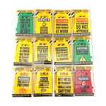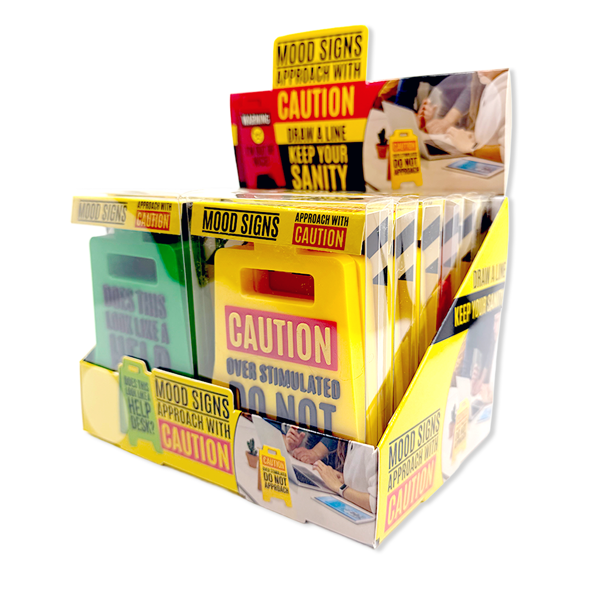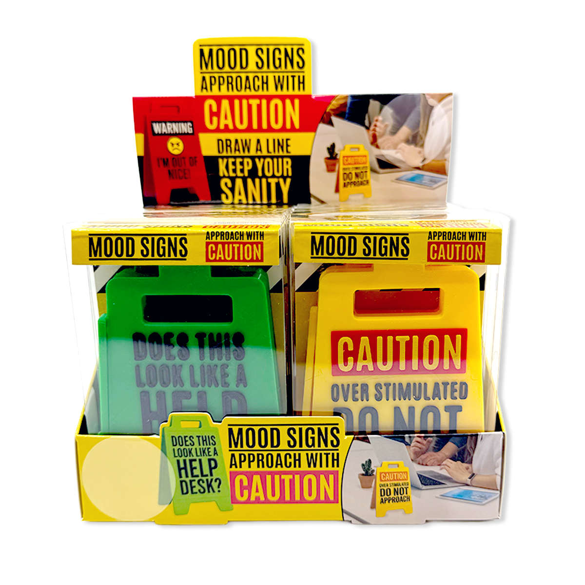 Warning: hilarity ahead! This 2 INCH 3D Standing Mood Caution Sign Assortment delivers cheeky, dimensional signs that humorously flag everything from coffee addiction to Monday blues. Each piece stands independently, making them ideal for desks, shelves, retail displays, and gift baskets. The vibrant designs and witty messaging appeal to office workers, students, and novelty enthusiasts. Comes retail-ready in a display-friendly pack—stock it and watch customers grab them for themselves or as gag gifts. Pure fun in compact form.