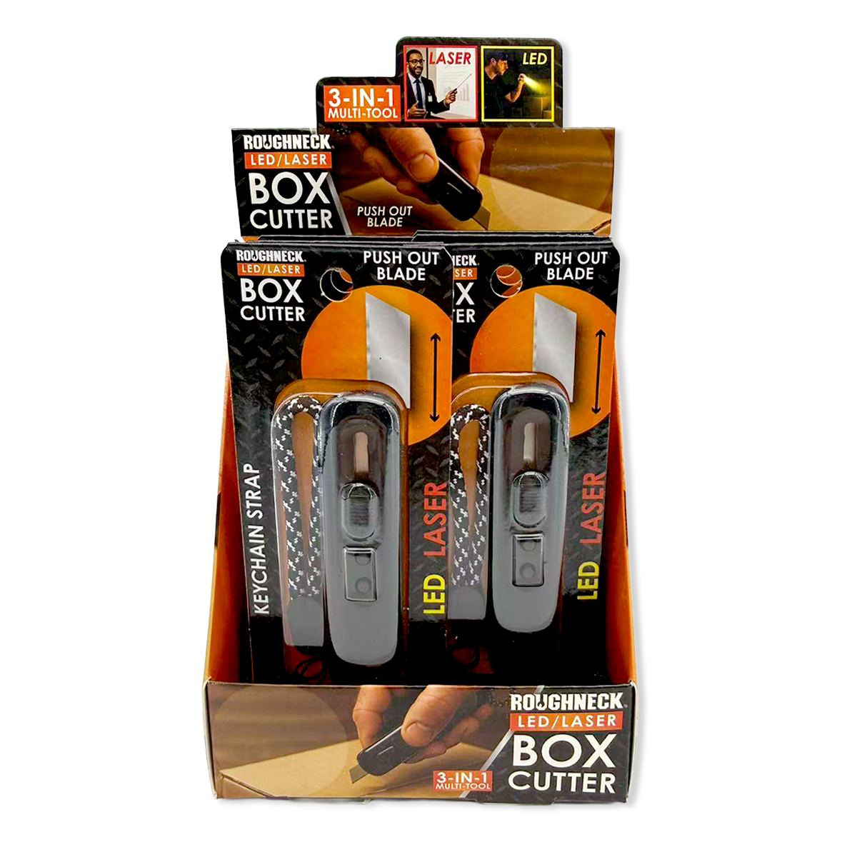 Cut through your workday with confidence using this ingenious 3-in-1 tool. Featuring a precision blade for clean cuts, an LED light for visibility in tight spaces, and a laser pointer for marking and presentations, this box cutter handles multiple jobs in one compact device. The attached keychain strap keeps it accessible wherever you go - ideal for professionals on the move. Built tough for demanding environments, it's the smart choice for anyone who values efficiency and versatility.