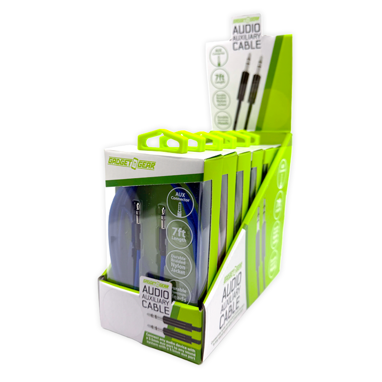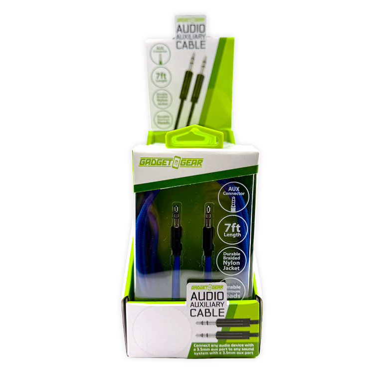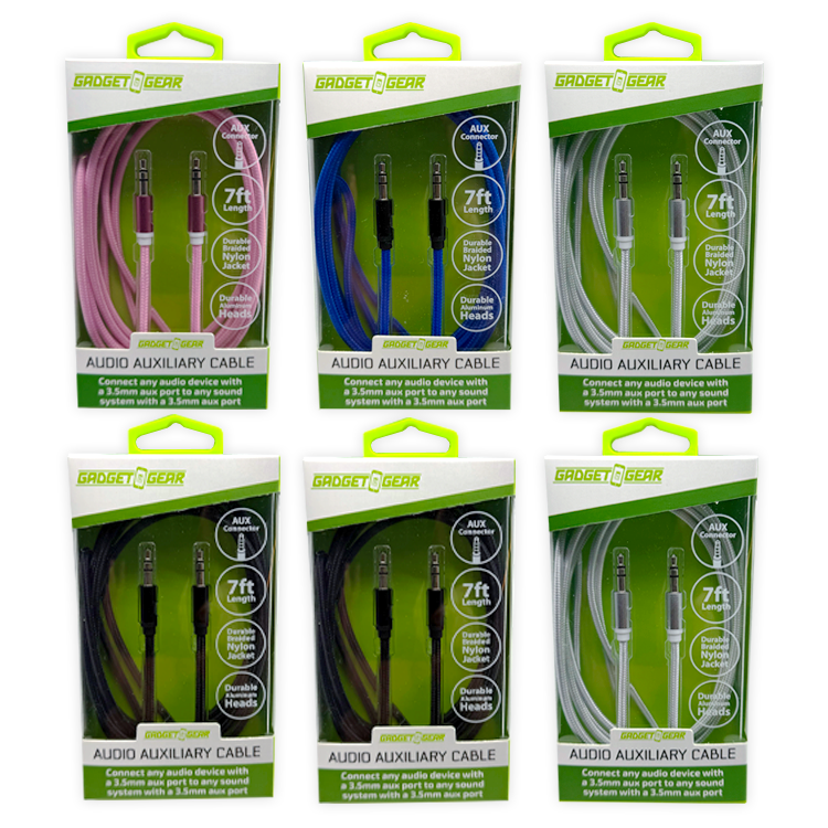 Braided Nylon Audio Auxiliary Cable 7FT - 6 Pieces Per Retail Ready Display 26552