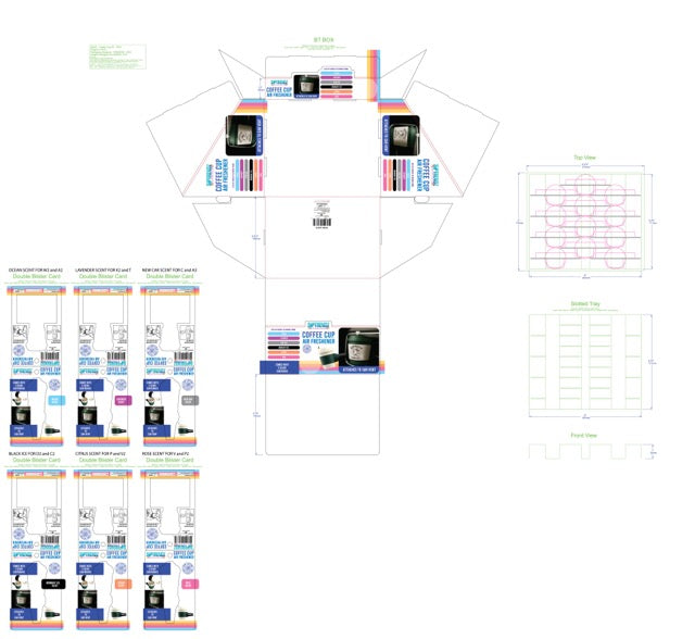 SIPTRENDZ Coffee Cup Air Fresheners transform your car into a caffeine lover's paradise. You need these charming coffee cup air fresheners. Each blister card features a unique color paired with a witty saying that speaks to car and coffee enthusiasts alike. The vent clip secures easily to your dashboard, while the back of the card showcases fragrant discs. Inside, two individually wrapped pellets stay fresh until you're ready to use them—simply open the card to see exactly how to activate your new car companion. With a funny saying printed on the band, these little gems deliver personality and aroma in one package. Display includes assorted pieces arranged in a 3-wide by 4-deep retail-ready configuration that catches eyes and drives sales.