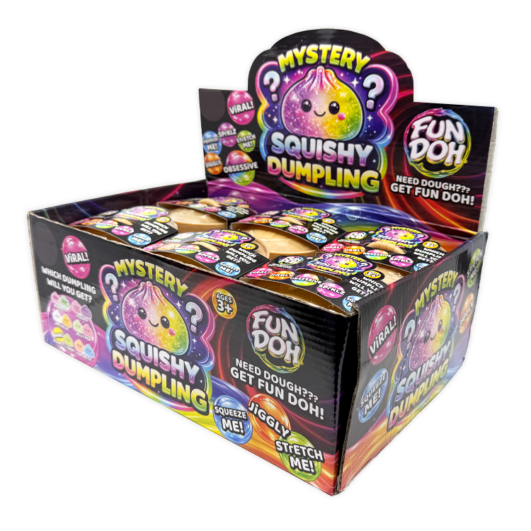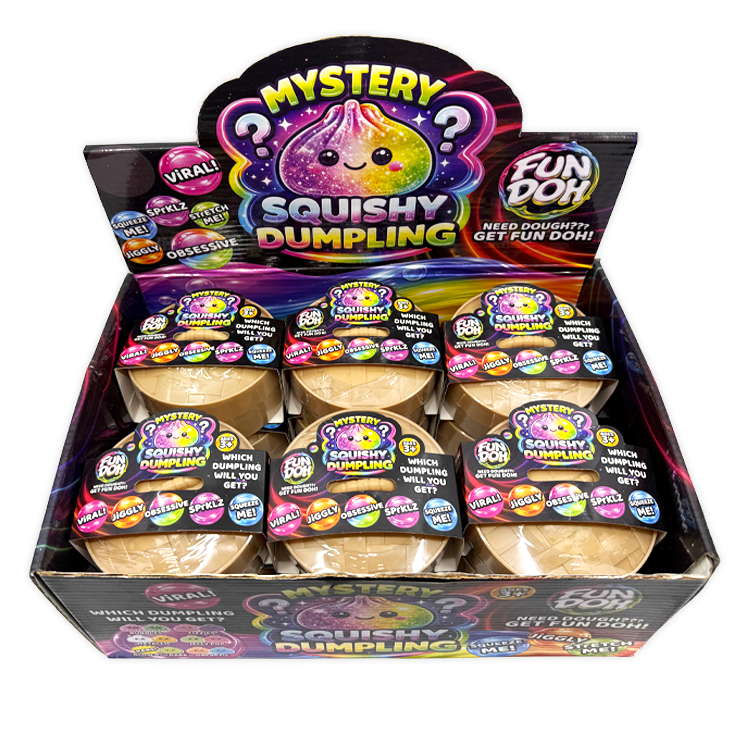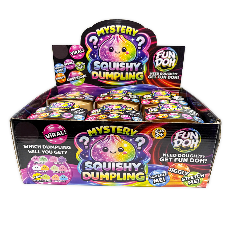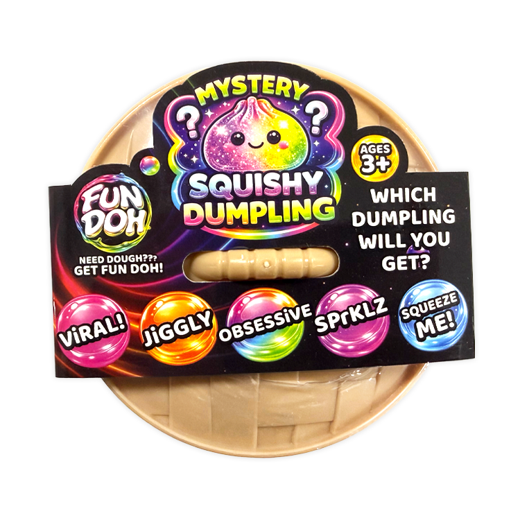 Get ready to squish, squeeze, and stretch your stress away with our 4" Fun Doh Squishy Mystery Dumplings—the trending stress relief toy that's flying off shelves! These delightful sensory toys offer instant relaxation and fidget satisfaction, with each mystery dumpling featuring a unique squishy texture that bounces back to its original shape. Already a bestseller in major retailers and across social media, this wholesale bulk item is your chance to capitalize on the hottest toy trend. Arrives stock-and-sell ready, making it perfect for gift shops, convenience stores, and toy retailers looking to meet surging customer demand for impulse-buy items. Don't miss out on this fast-moving inventory. Suitable for ages 3+. Stock up now before these trending toys sell out!