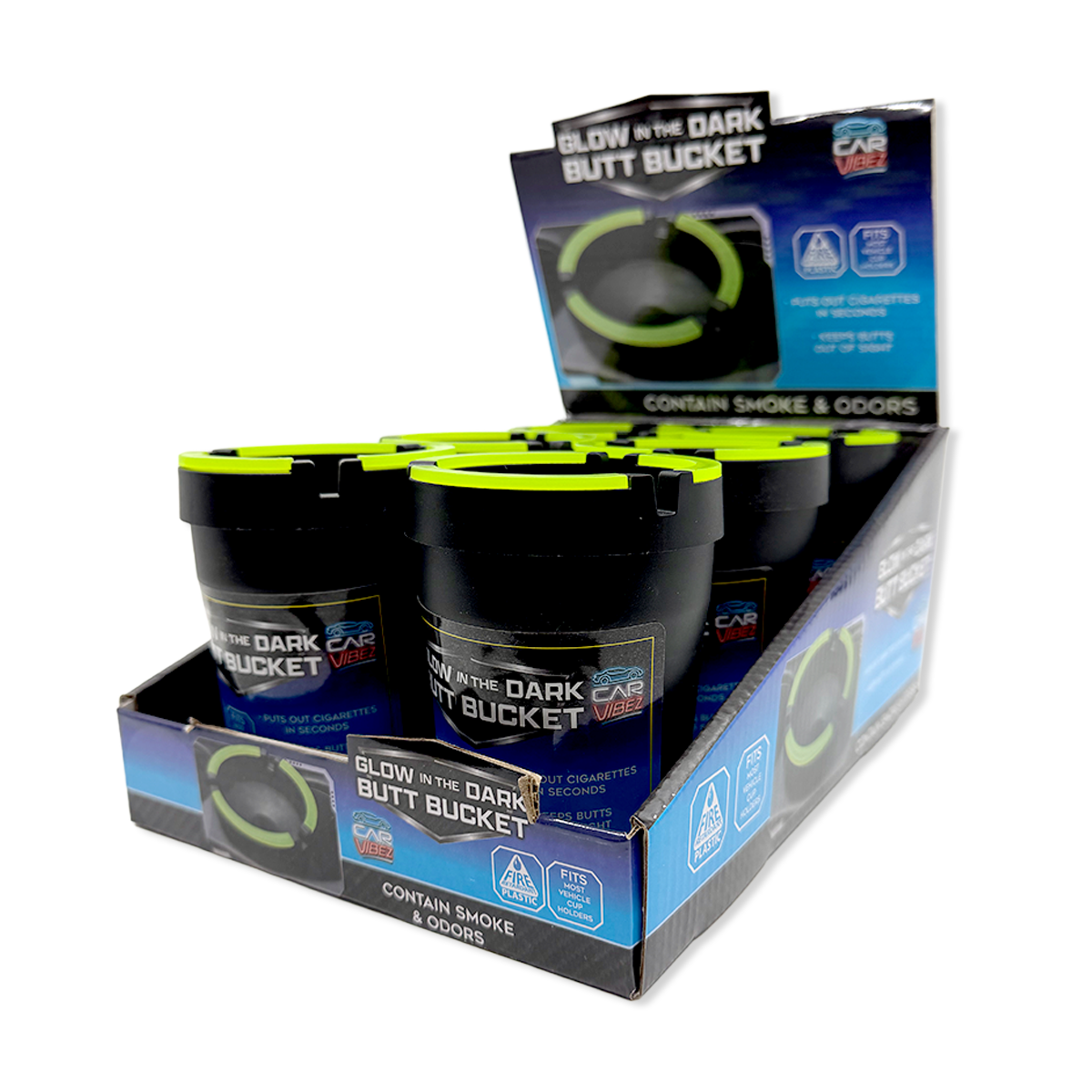 Glow In The Dark Butt Bucket Ashtray – fire-retardant design safely extinguishes cigarettes in seconds while the glow-in-the-dark feature ensures visibility in any lighting condition. This compact ashtray contains smoke and odor effectively, making it ideal for vehicles, patios, or indoor spaces. The universal fit accommodates most standard car cup holders, delivering convenience without taking up valuable space. Perfect for wholesale buyers seeking a practical, eye-catching novelty item with genuine utility.