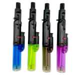 Smokezilla 45º Pivot Torch works at any angle — even upside down! Small enough to fit in your pocket, yet powerful and versatile enough for any task; from lighting candles, grills, bonfires and more! Safety cap stops ignition when closed. Refillable butane tank. Each display includes a variety of transparent color styles.