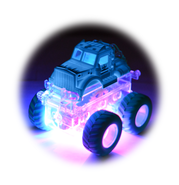 Light Up Vehicle Gear Racers feature multicolor light-up action, push and go friction power and 360º stunt spin! Ages 3+. Assorted colors. Batteries included for light-up action! Anti-skid rubber grip wheels – perfect for indoor AND outdoor play.