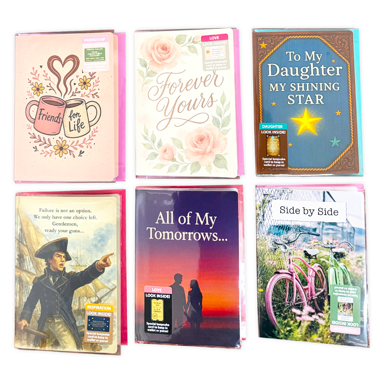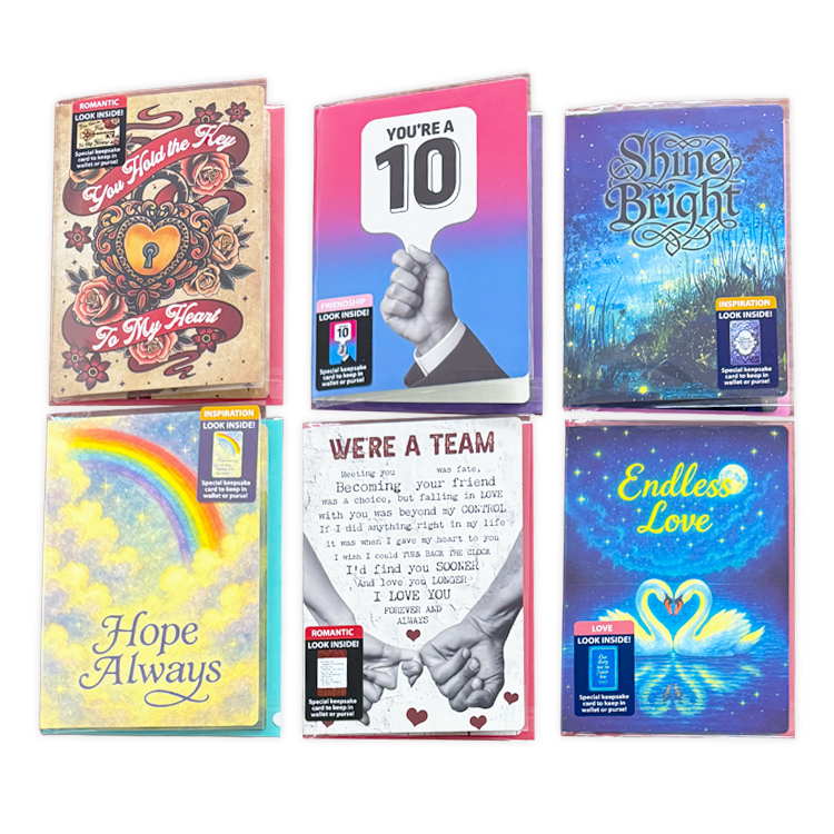 Celebrate every meaningful moment with this versatile card collection designed for life's most important occasions. Whether you're expressing love, offering inspiration, strengthening friendships, or sharing gratitude, you'll find the perfect card for every sentiment. Each card opens to reveal a special keepsake card tucked inside - a thoughtful token your loved ones can treasure in their wallet or purse as a lasting reminder of your care. Ideal for gift shops, boutiques, and retailers looking to stock quality greeting cards that resonate with customers seeking genuine, heartfelt connections! 💖