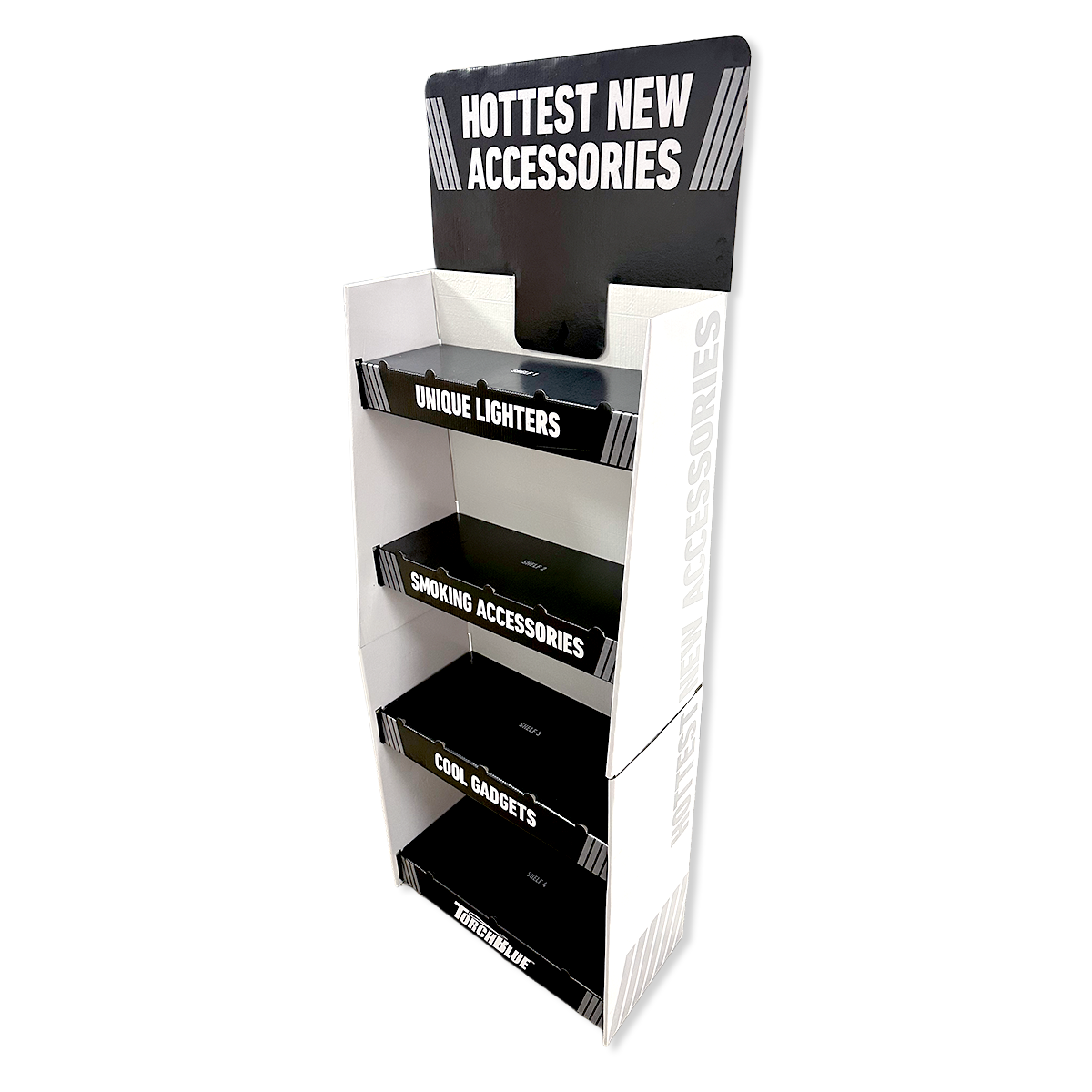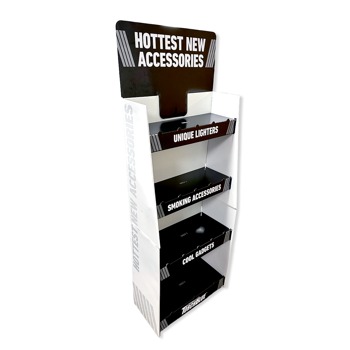 Our Smokezilla Corrugated Display showcases a variety of impulse products within a floor display that cannot be ignored. Shelves feature pre-priced product sections.