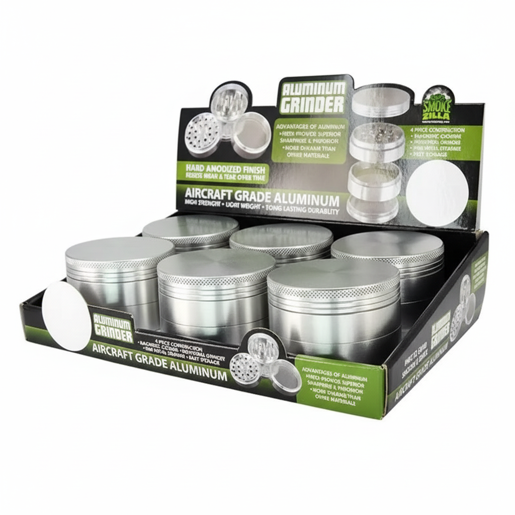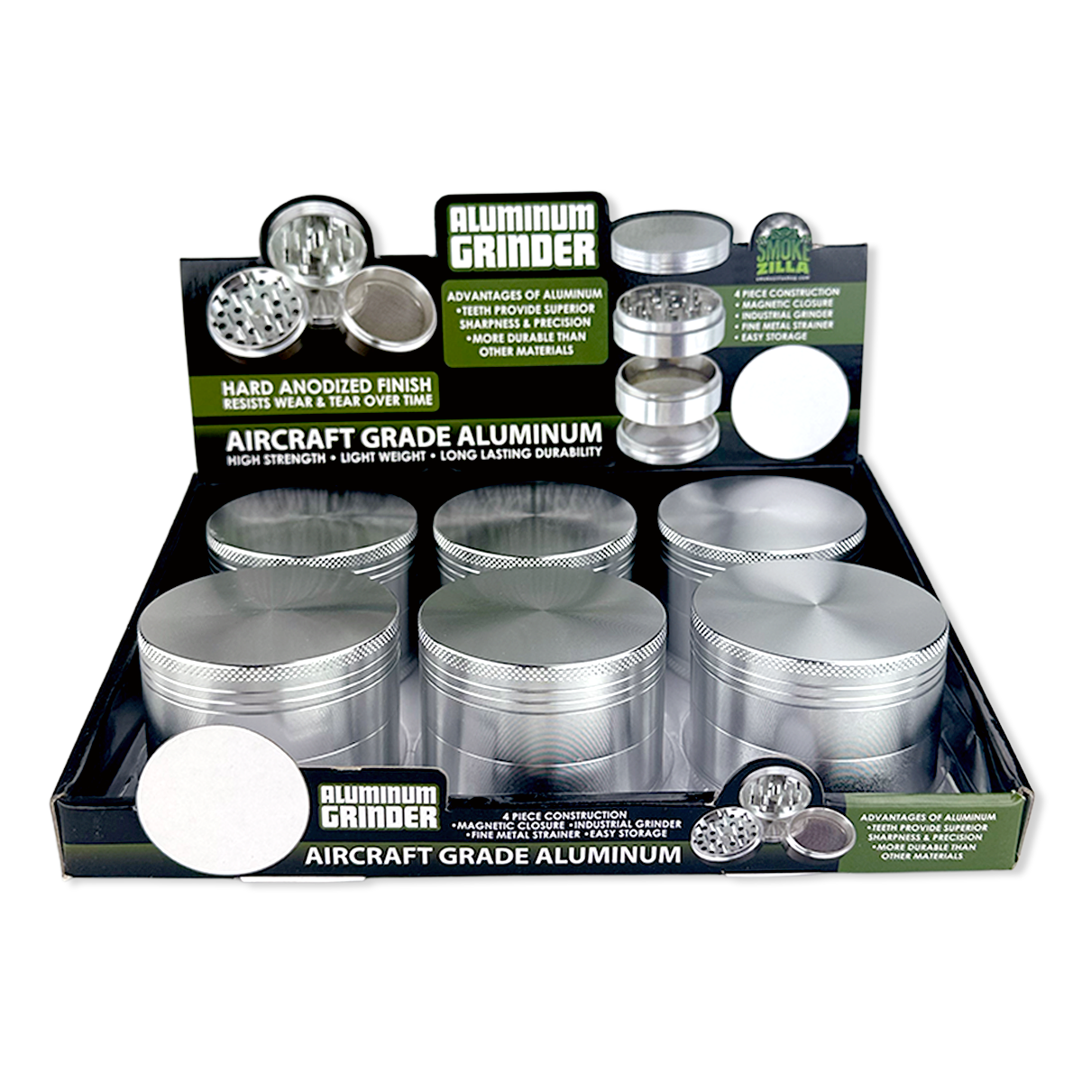 Metal 4 Piece Grinder 63MM - 6 Pieces Per Retail Ready Display 24865GPSILVER