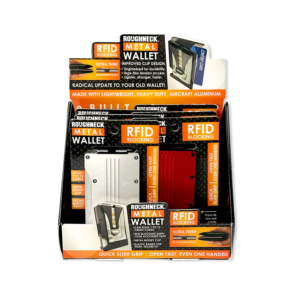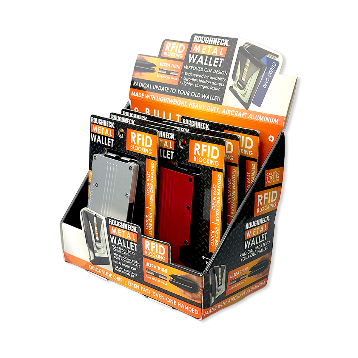 Secure your essentials with this ultra-thin RFID blocking wallet engineered from aircraft-grade aluminum. The quick-slide grip features molded ridges for confident handling, while the ergonomic flex money clip—designed with a strategic slot for reduced weight and enhanced flexibility—holds 1-12 cards without adding bulk. Available in multiple colorways, this premium accessory combines security-conscious design with lightweight performance, making it an ideal choice for retailers targeting discerning customers who value both protection and practicality.