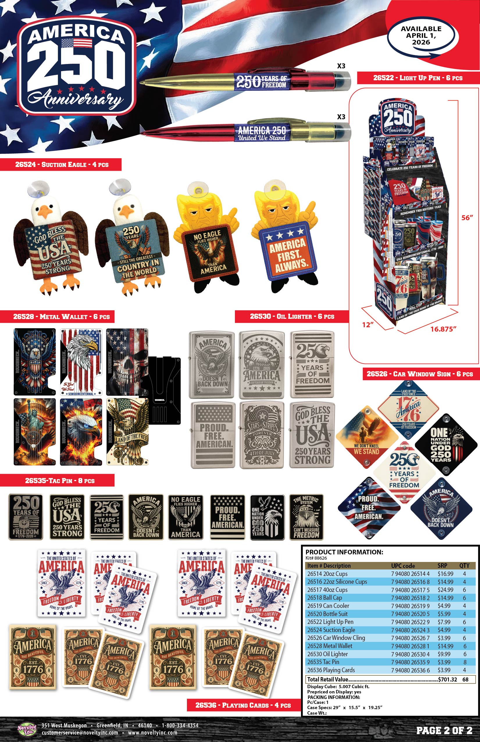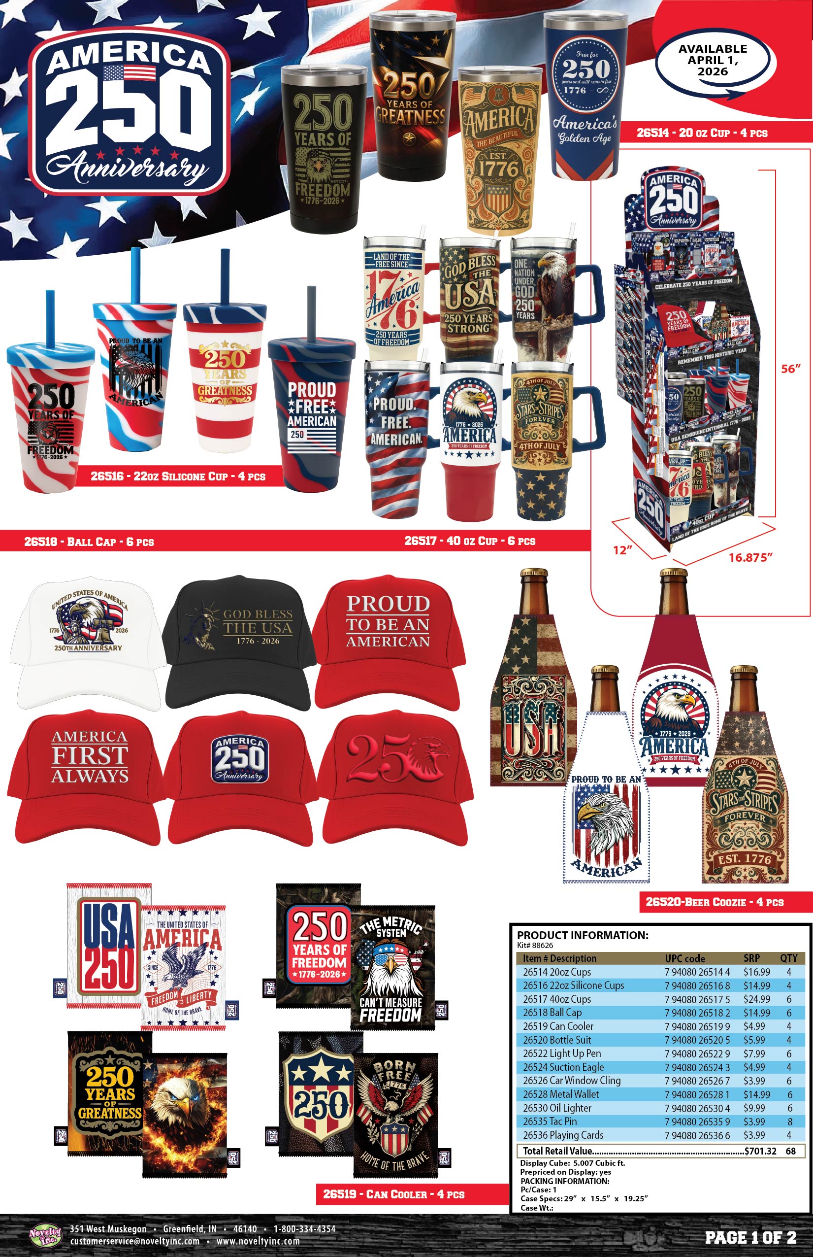 Patriotic USA 250 Floor Display - 78 Pieces Per Retail Ready Display Kit 88626