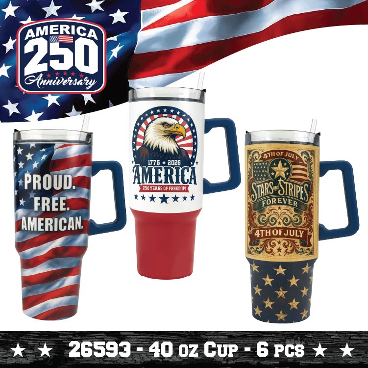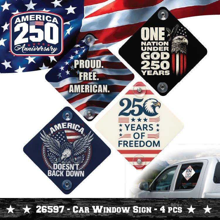 Commemorate America's milestone with this striking USA 250 Floor Display—a retail-ready solution designed to capture customer attention and drive seasonal sales. Each kit includes patriotic product merchandised for immediate shelf placement, eliminating extensive setup time and maximizing floor impact. Perfect for retailers celebrating the nation's 250th anniversary, this display combines patriotic appeal with practical merchandising efficiency. Ideal for convenience stores, gift shops, and general retailers seeking turnkey promotional solutions that resonate with customers during this historic moment.