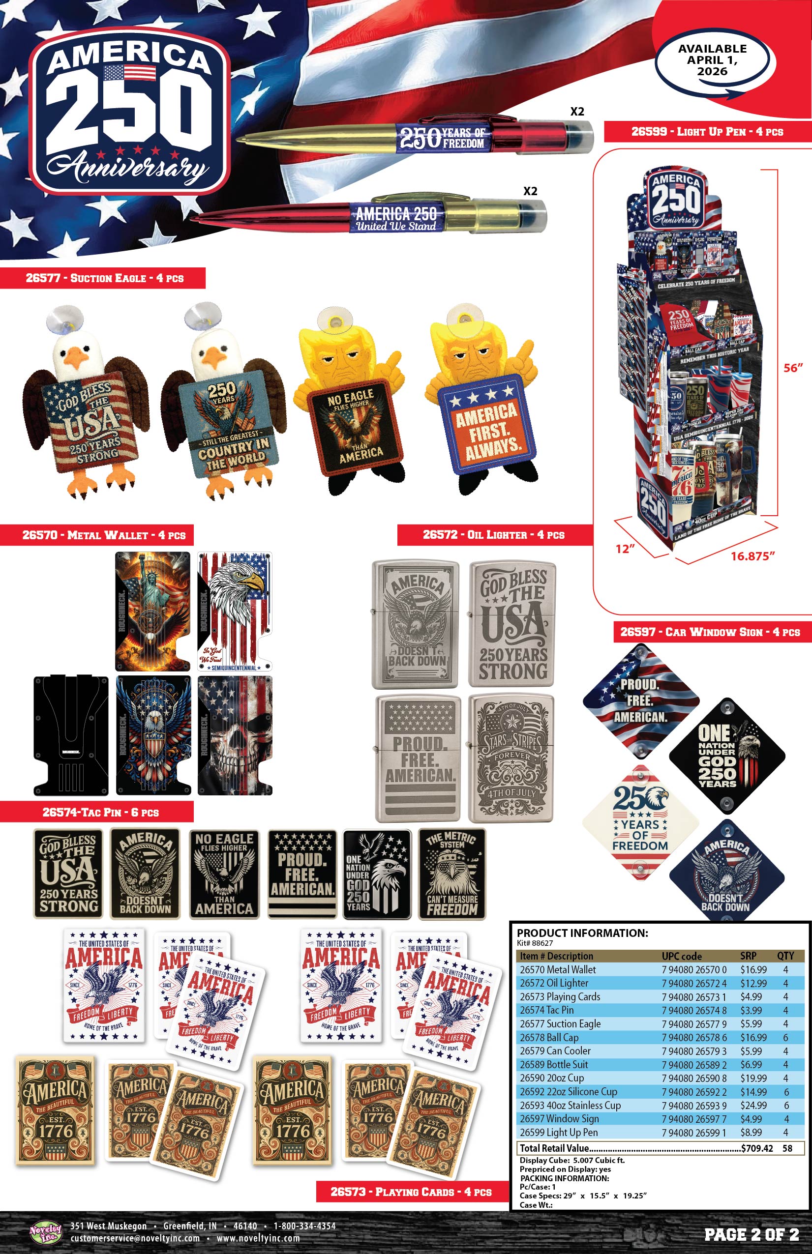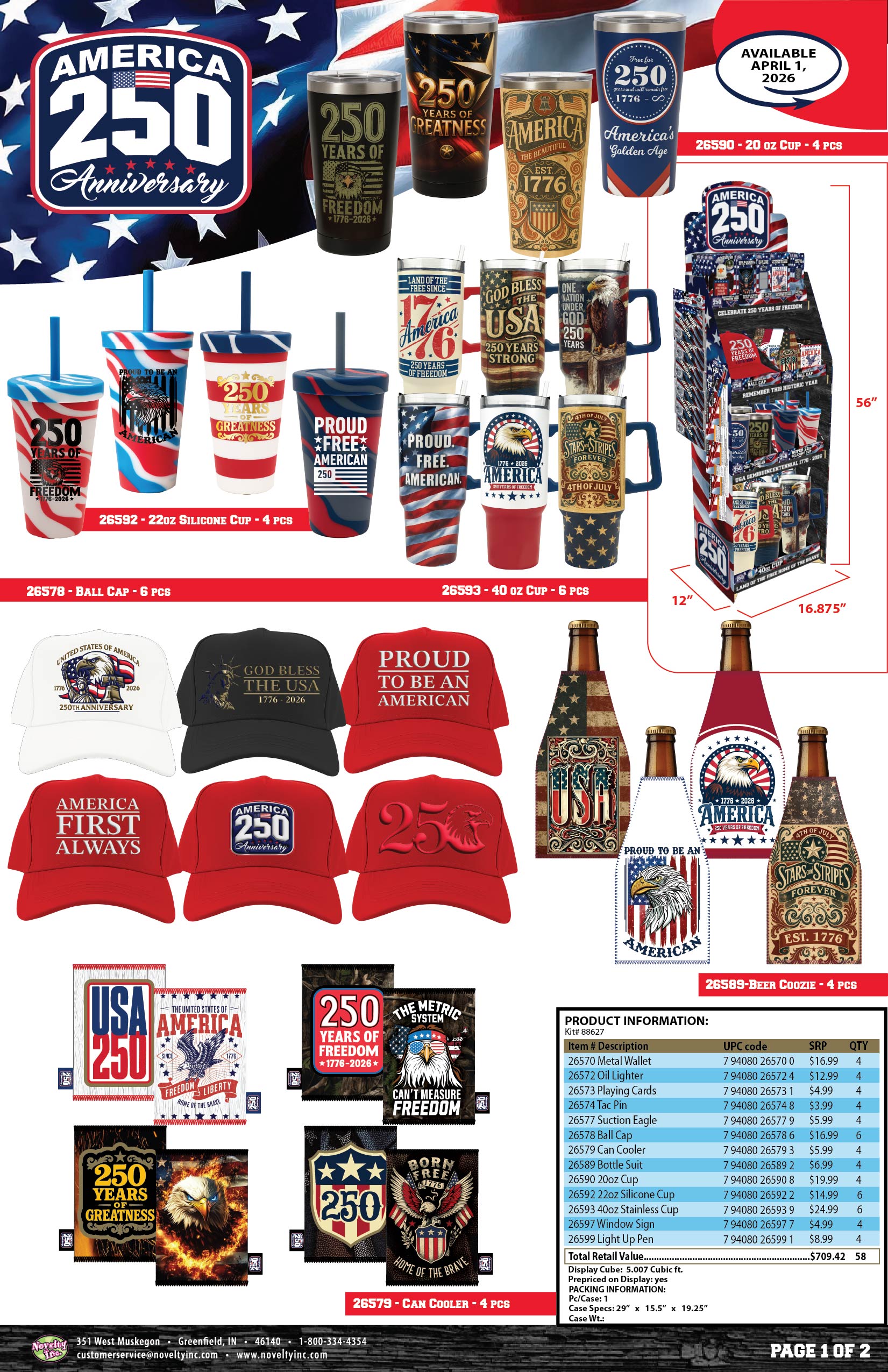 Patriotic USA 250 Floor Display - 58 Pieces Per Retail Ready Display Kit 88627