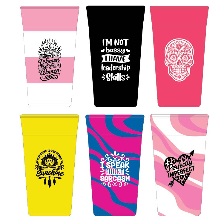 These 22oz Silicone Cups are made of BPA-free, non-spill, spill-resistant 100% safe food-grade silicone, and includes a variety of air-print artwork. These cups are perfect for on-the-go adventures. Durable and safe, these cups are stain, chip, and scratch resistant.