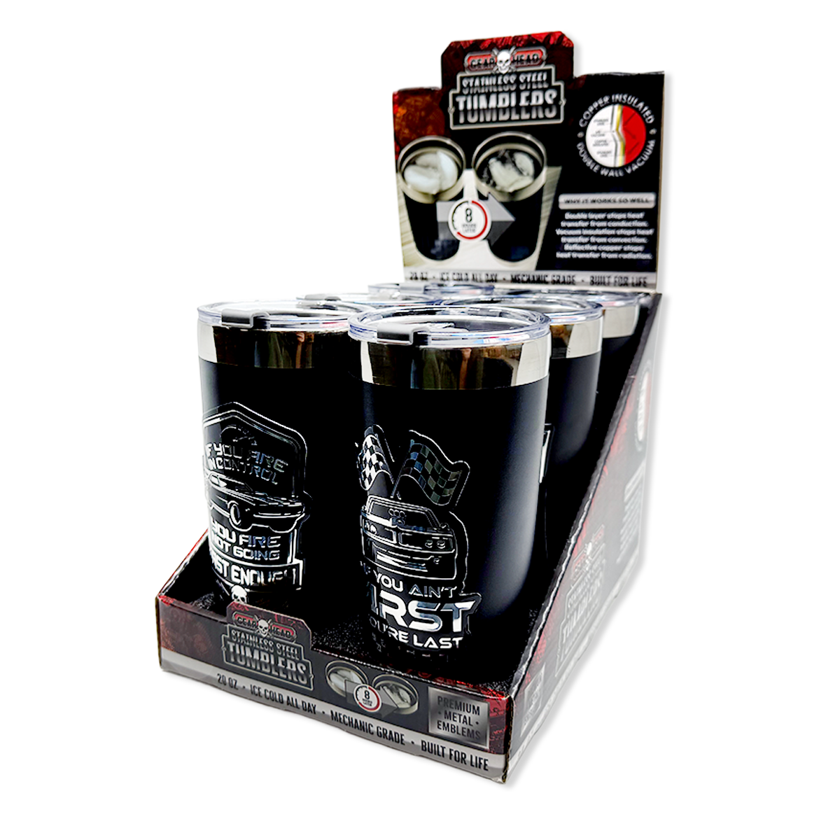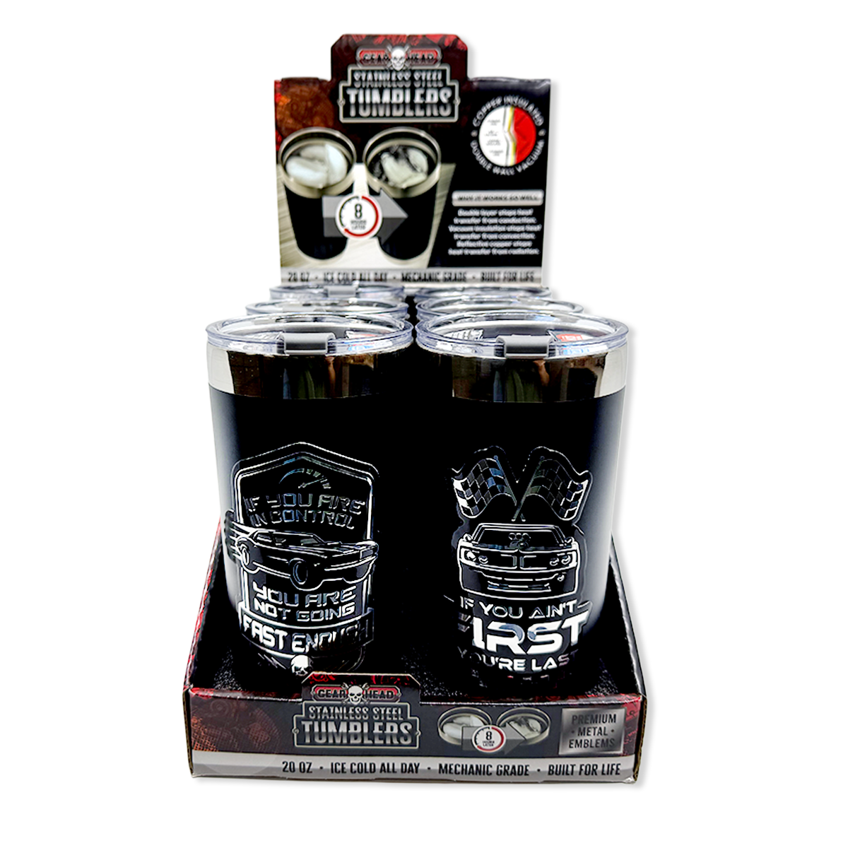 Maintain your beverages at the ideal temperature all day with our Stainless Steel 20oz Insulated Printed Tumblers. Constructed from double-layered ceramic and stainless steel, these tumblers include a non-spill lid and a condensation-free design, making them perfect for use on the go. The double layers block heat transfer through conduction, vacuum insulation prevents heat loss by convection, and reflective copper reduces radiation heat transfer. Enjoy up to 8 hours of ice-cold drinks, BPA-free safety, compatibility with most cup holders, and a cool metal emblem on each cup.